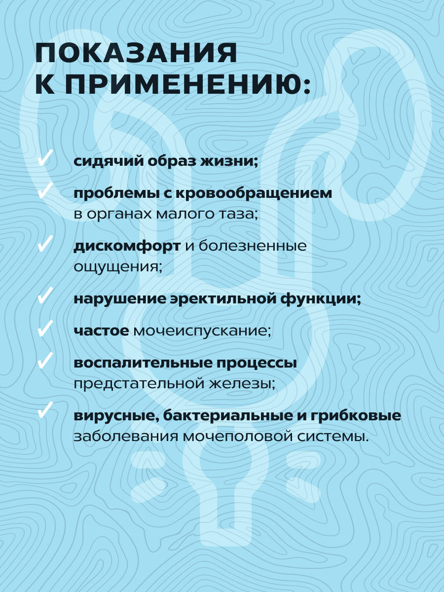 | Показания к применению | В качестве натурального средства местного применения для поддержания функционального состояния мочеполовой и репродуктивной систем мужского организма, профилактики патологий предстательной железы и повышения потенции. |