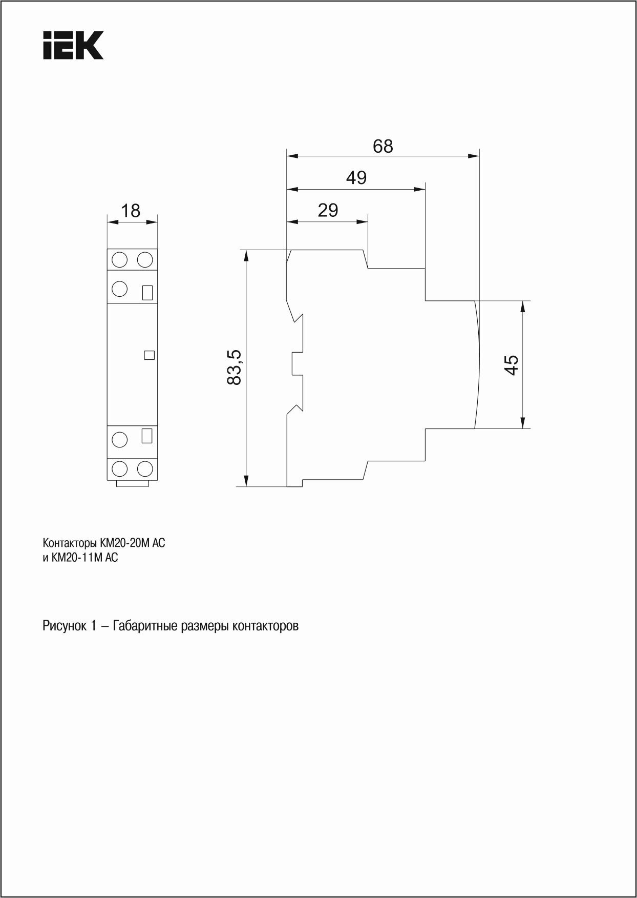 Контактор модульный КМ20-20М 20А 2НО 230В AC IEK информация: