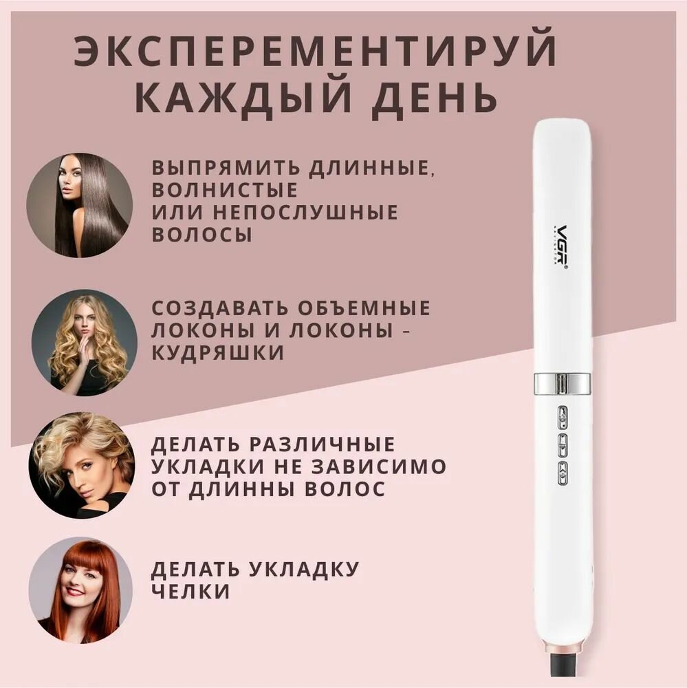 Электрощипцы - профессиональный утюжок-выпрямитель для укладки волос VGR V-520 / Щипцы для моделирования причёски