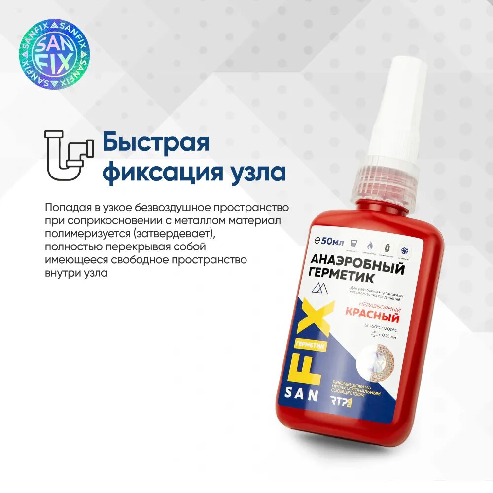 Отзывы на Герметик анаэробный неразборный SANFIX, низко-средней вязкости, высокой прочности, 50 мл., блистер красный