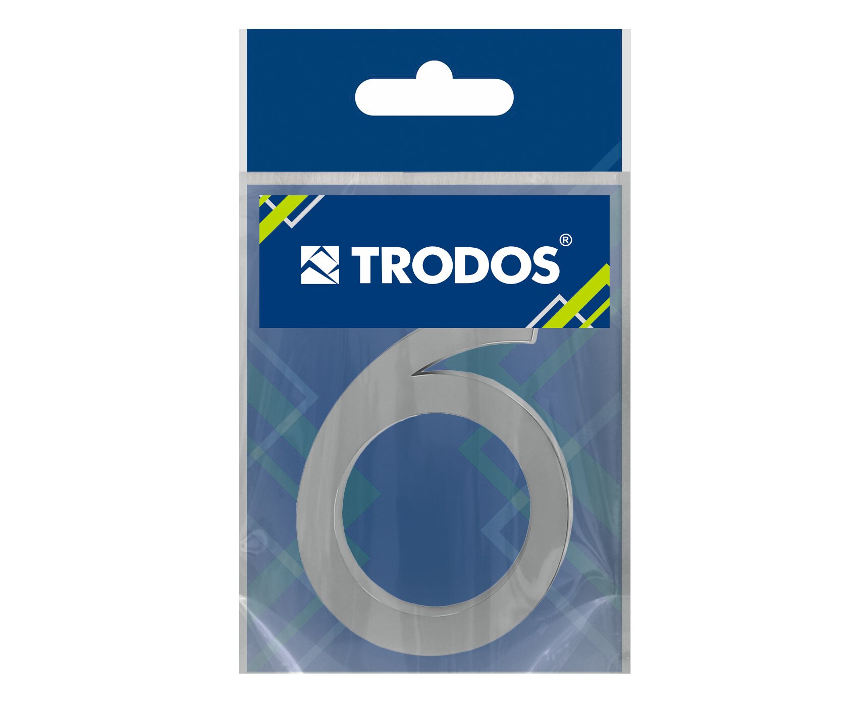 Номер дверной самоклеющийся, цифра на входную дверь "6" Trodos , классика, хром 255 ₽