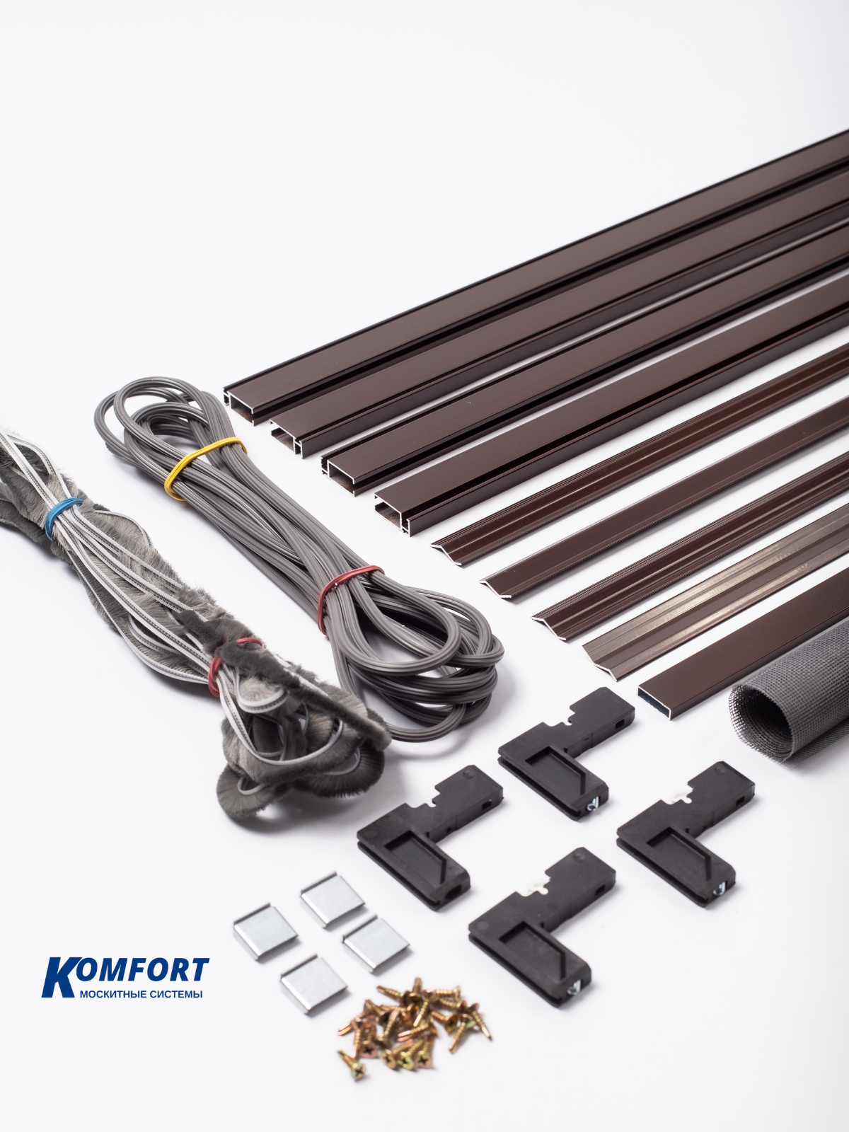 Раздвижная москитная сетка 1990*990 мм коричневая. Комплект для самостоятельной сборки. информация: