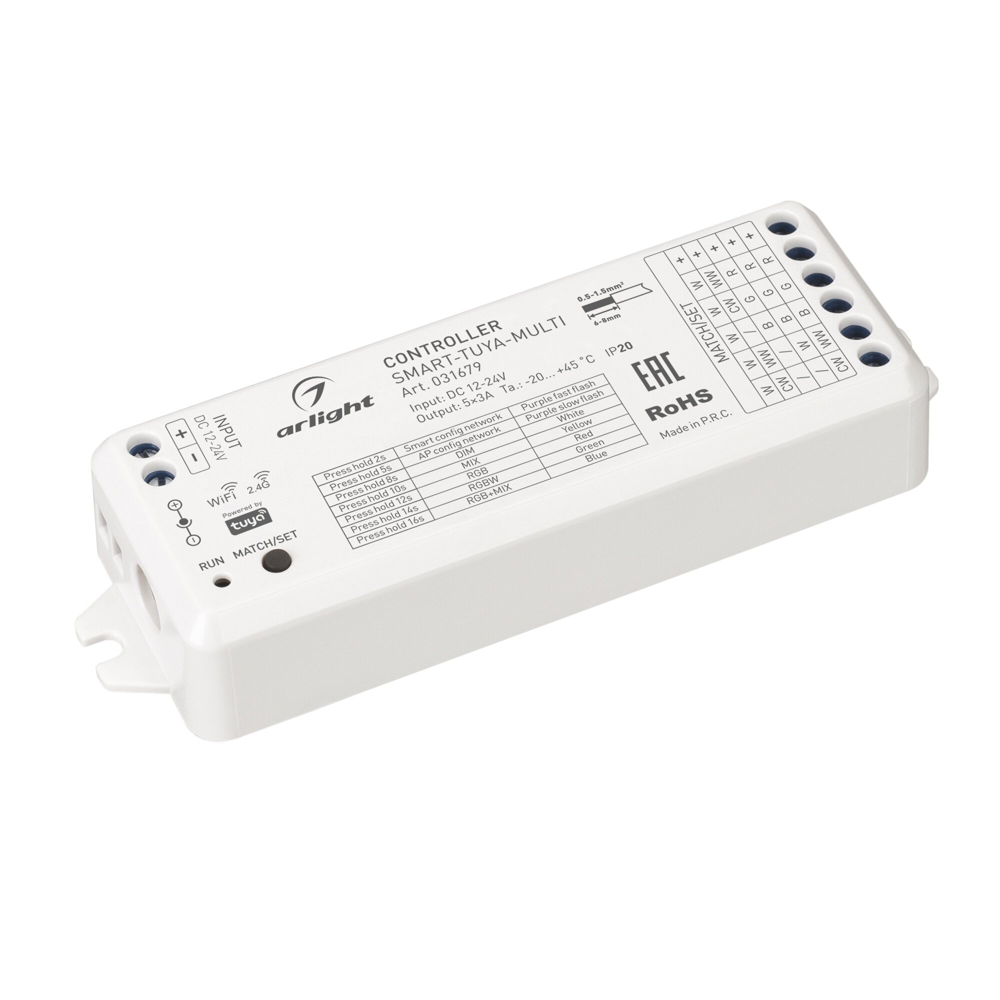 031679 Контроллер SMART-TUYA-MULTI (12-24V, 5x3A, RGB-MIX, 2.4G) (Arlight, IP20 Пластик, 5 лет) информация: