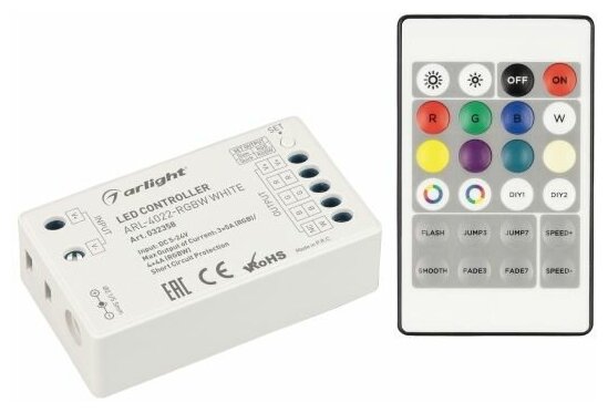 10 цен на 032358 Контроллер ARL-4022-RGBW White (5-24V, 4x4A, ПДУ 24кн, RF) (Arlight, IP20 Пластик, 3 года)