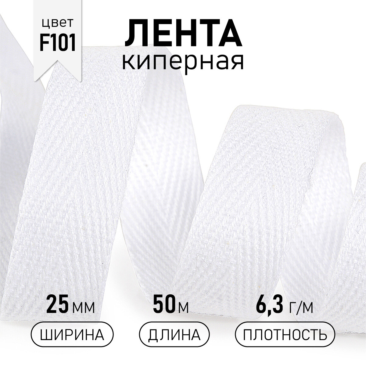10 цен на Тесьма киперная 25 мм хлопок 6,3г/м арт.TBY.CT25101 цв.F101 белый уп.50м
