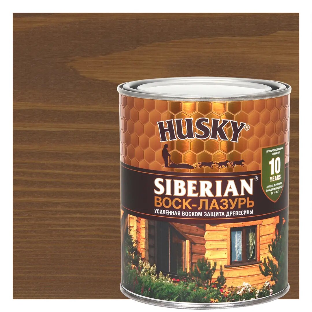Хаски / Воск-лазурь для древесины, пропитка антисептик для дерева, декоративно-защитный состав HUSKY SIBERIAN орегон (0,9л)