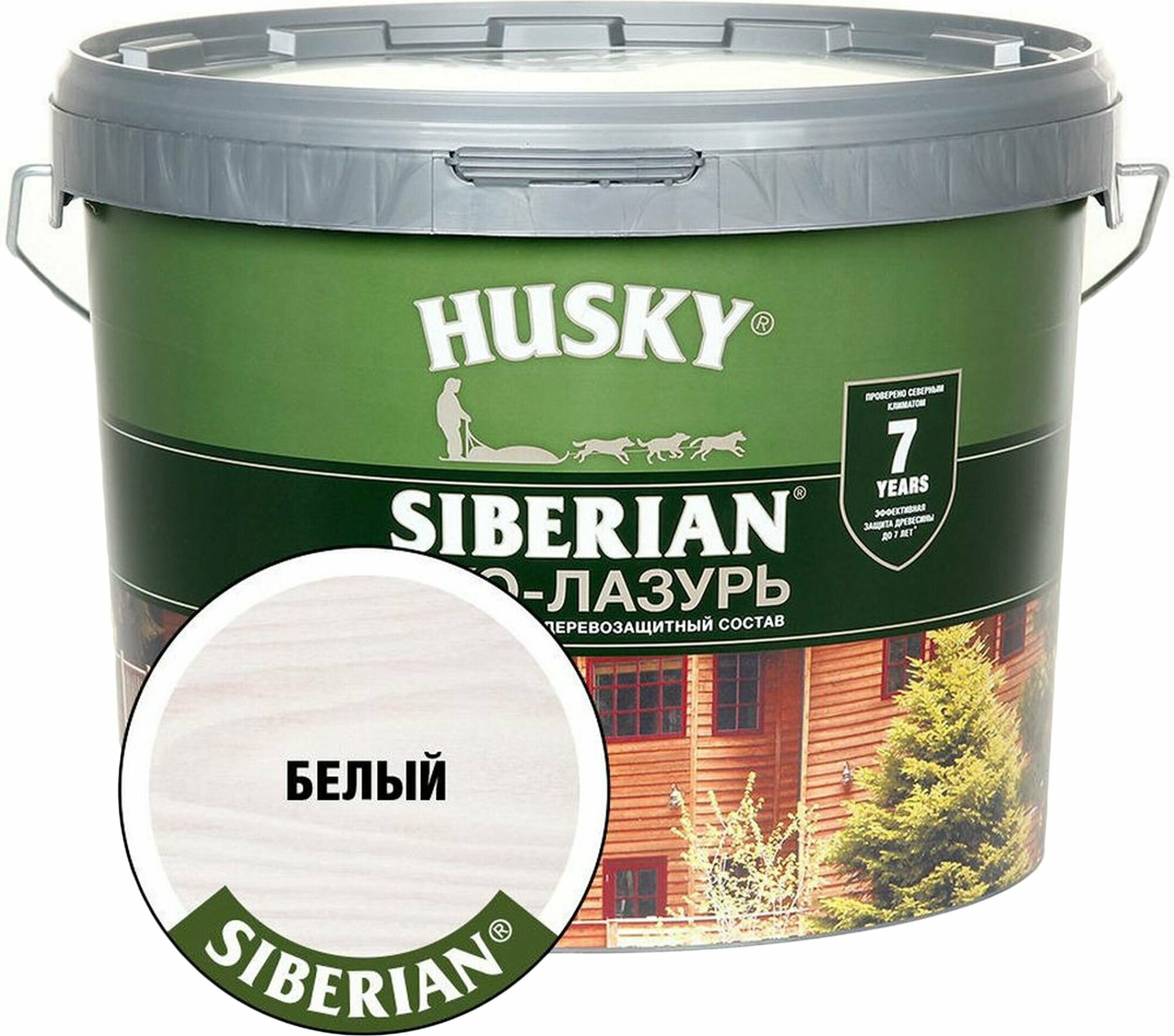 Лазурь HUSKY Siberian 9 л полуматовая белая информация: