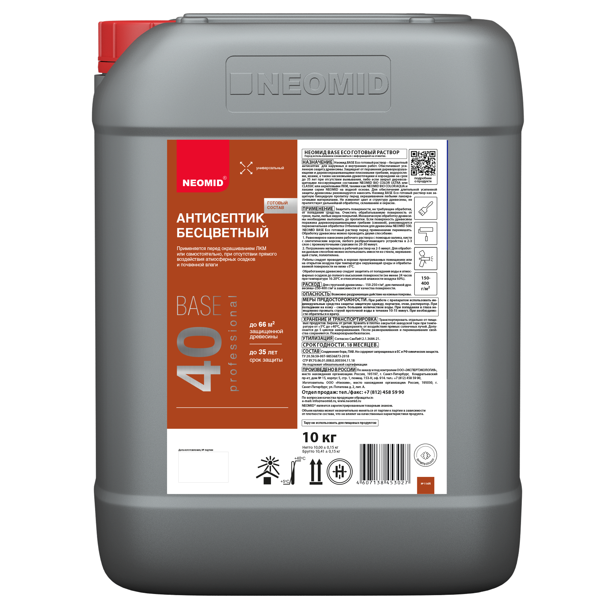 Универсальный Антисептик Neomid 40 Base ECO 10л Бесцветный для Наружных и Внутренних Работ / Неомид 40 Бейз Эко. информация: