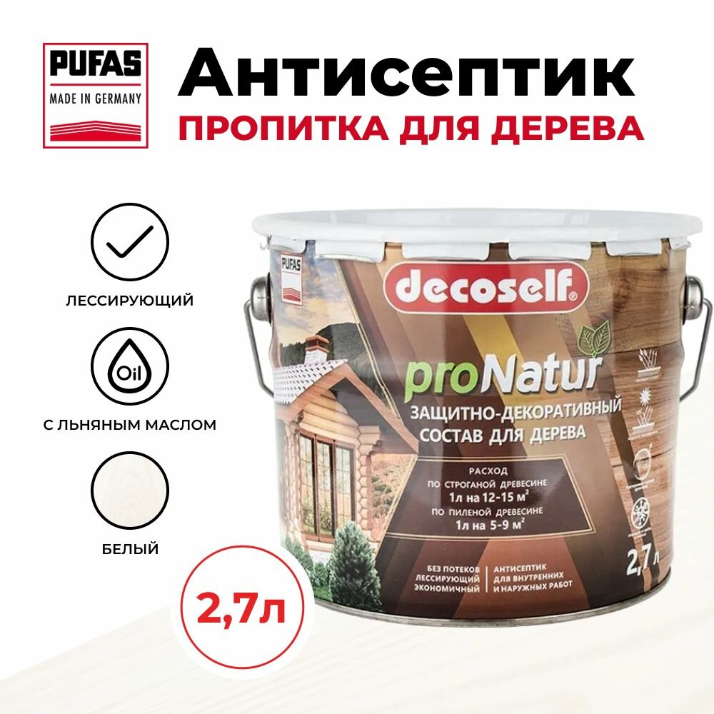 Антисептик лессирующий для дерева Pufas Decoself белый (2,7 л) информация: