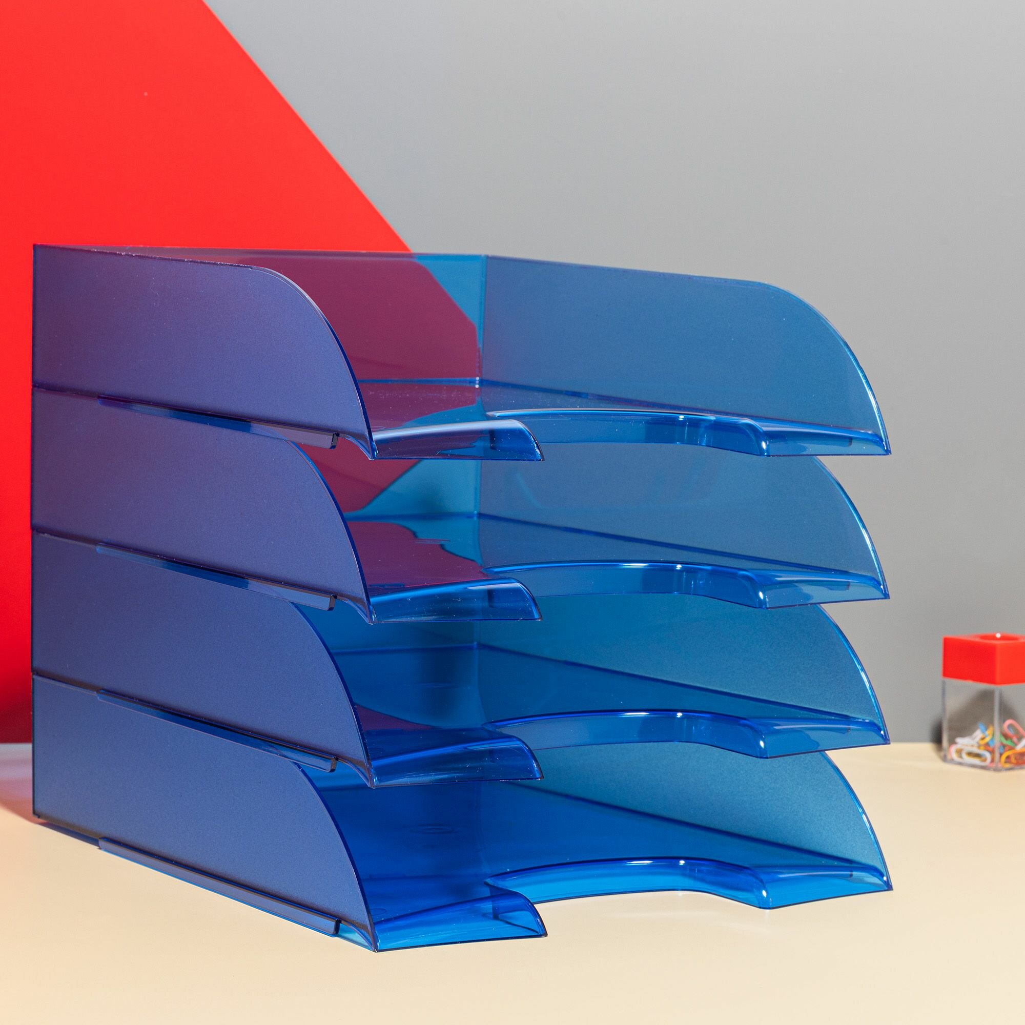 Лоток для бумаг Attache тонированный, синий, 4 штуки (1111996)