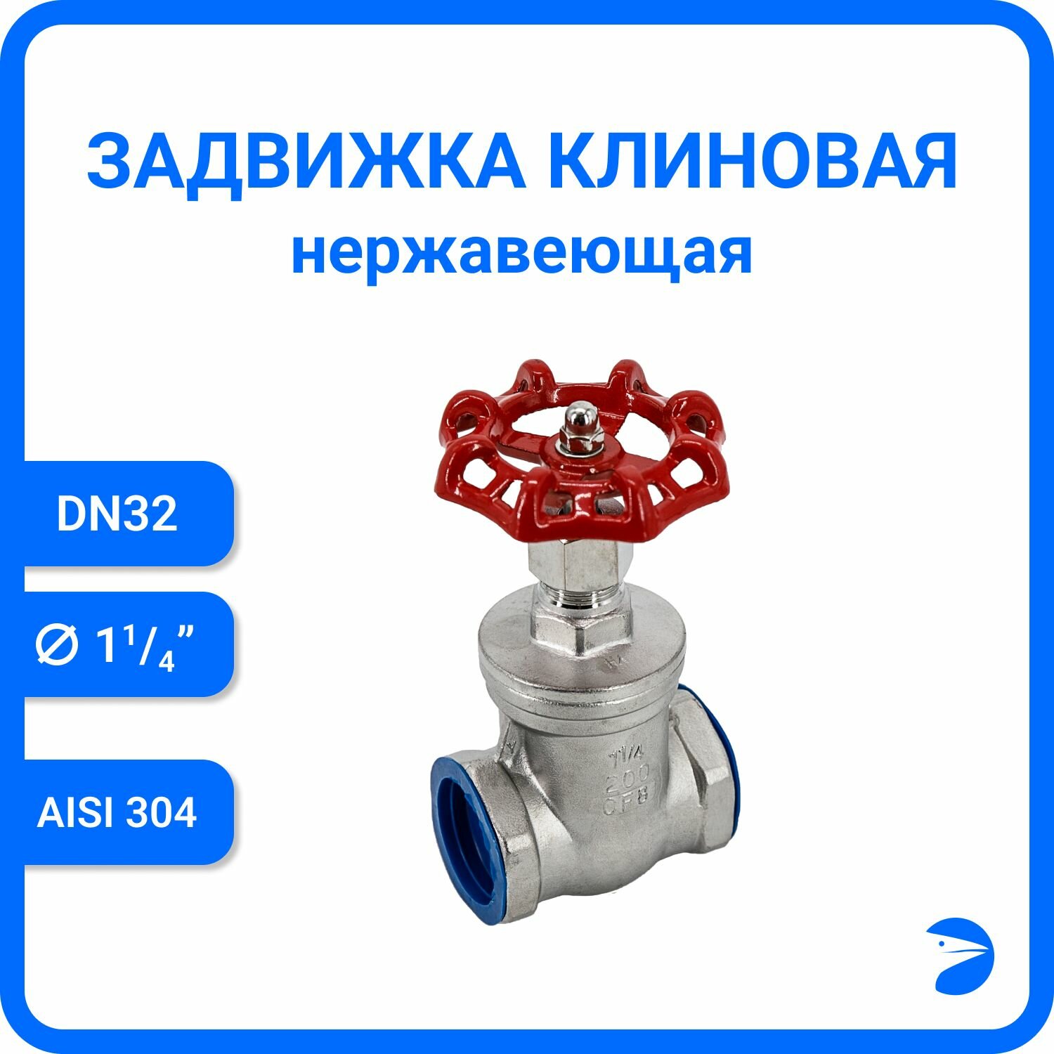 10 цен на Задвижка клиновая муфтовая нержавеющая, AISI304 DN32 (1_1/4"), (CF8), PN40