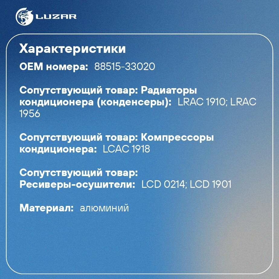 10 цен на LUZAR LTRV1918 Клапан кондиционера TOYOTA CAMRY(XV40) 07- 2.4/3.5