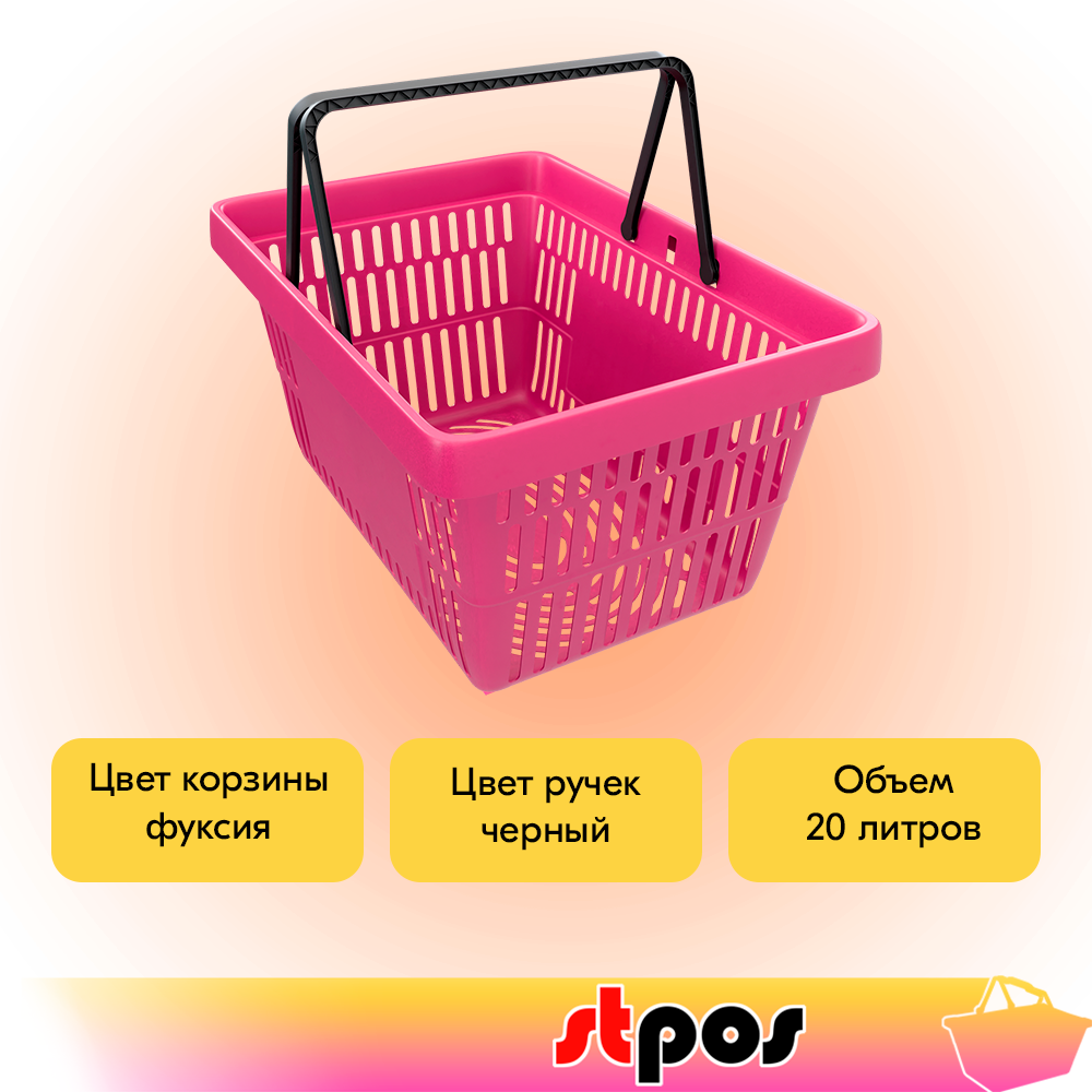 Корзина покупательская пластиковая чёрная с 2 ручками цвета фуксия усиленная ROCK 20 л 1 607 ₽