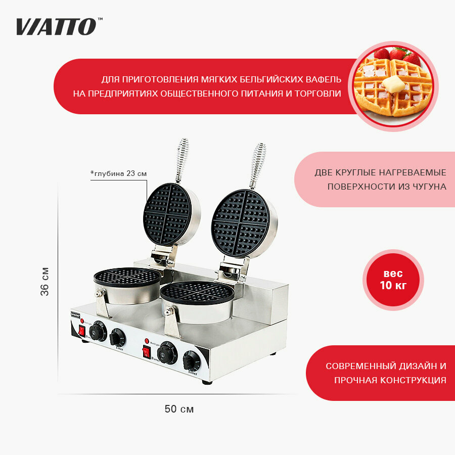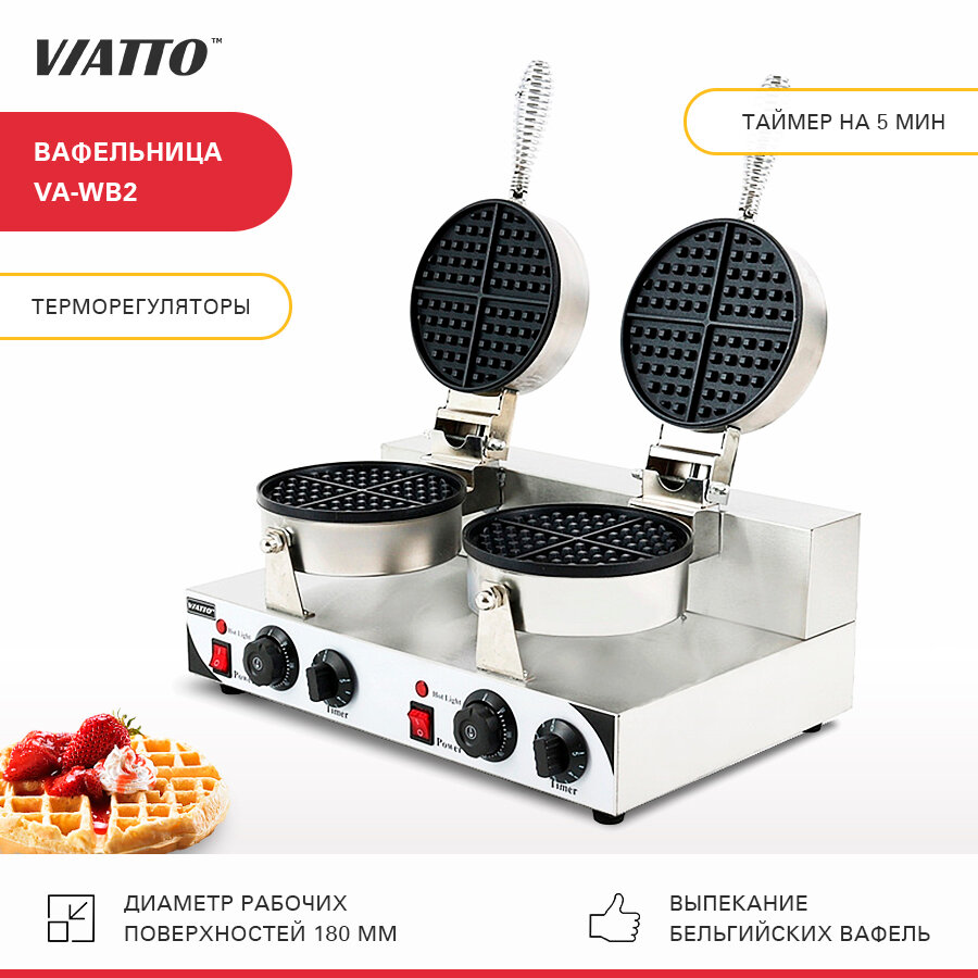10 цен на Вафельница электрическая Viatto Commercial VA-WB2, аппарат для приготовления круглых (сегментных) бельгийских вафель