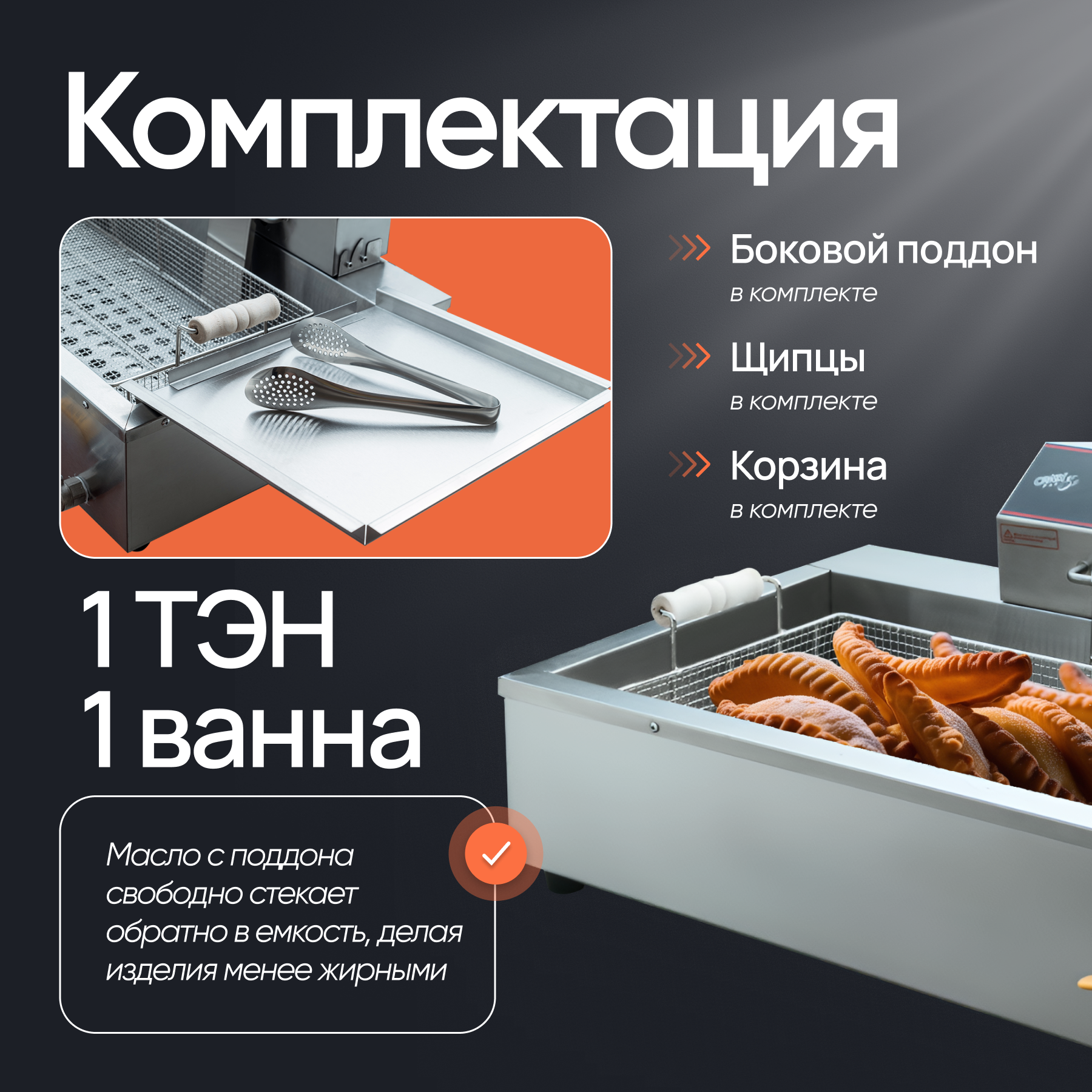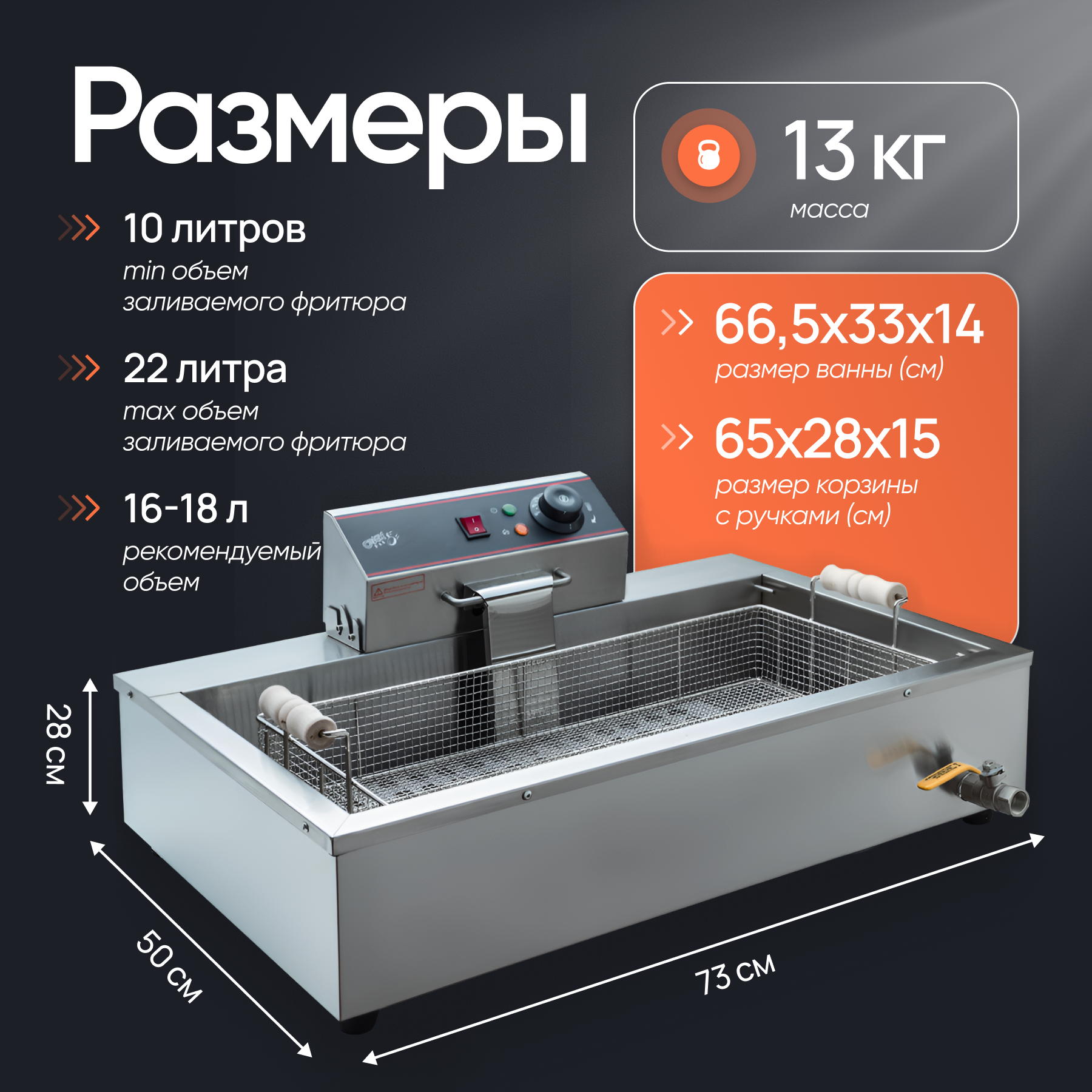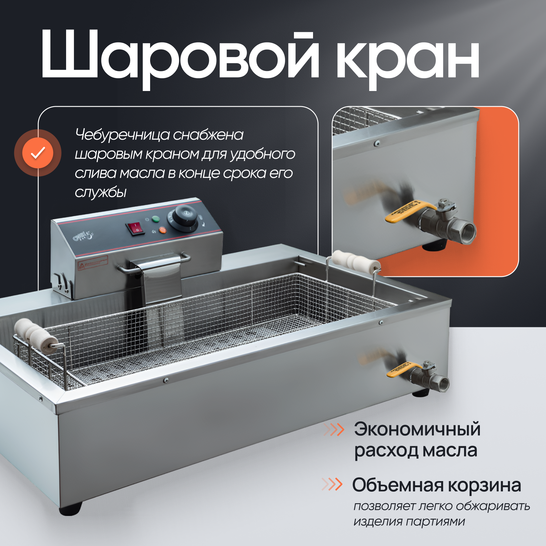 Чебуречница Crazy Pan CP-BEF16, 3.9 кВт, 220В, максимальный объем фритюра 22 литра, кран для слива, размер ванной 665x330x140мм информация: