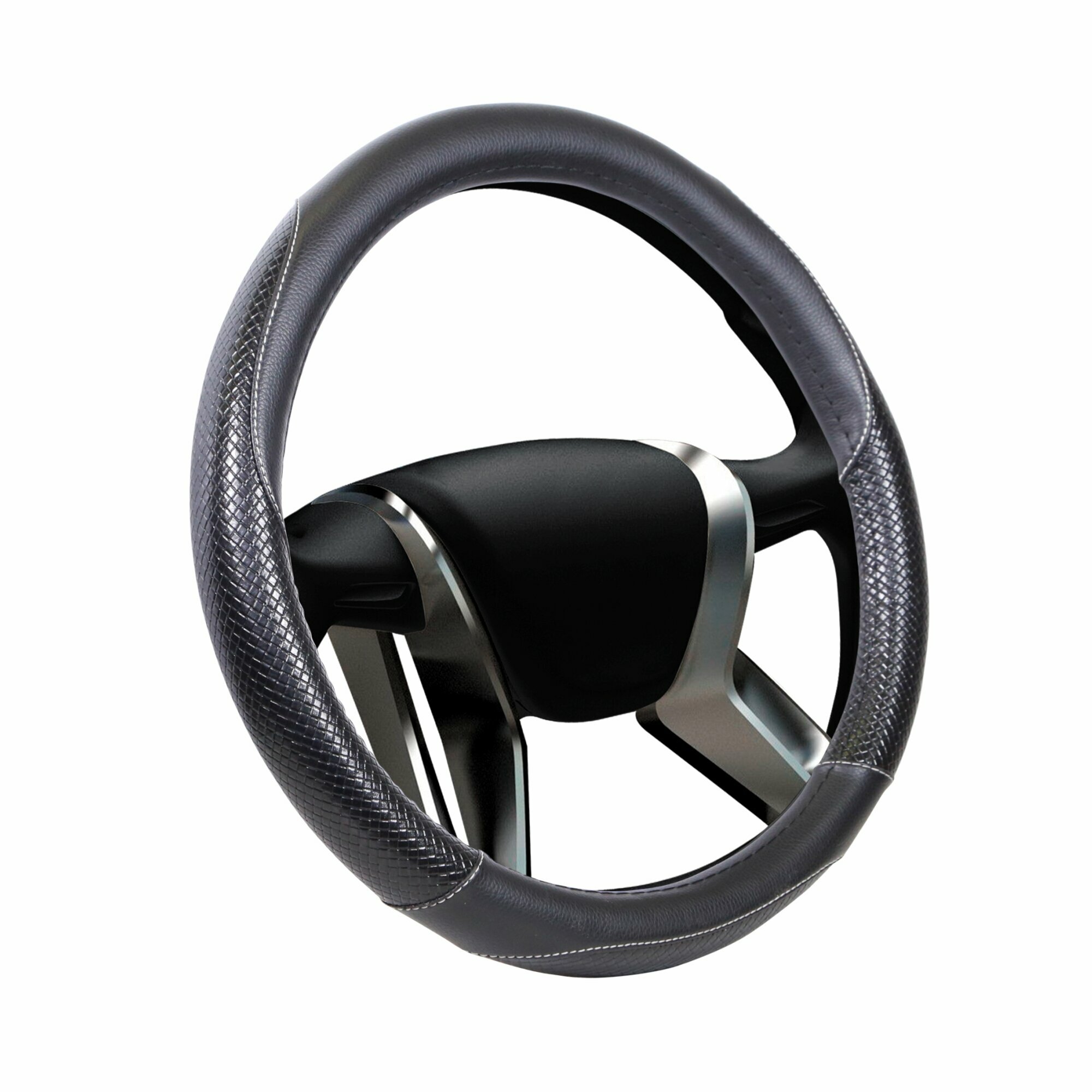 Оплетка на руль универсальная из экокожи «CARBON» М 37-39 см (чёрная, строчка чёрная) belais #21608