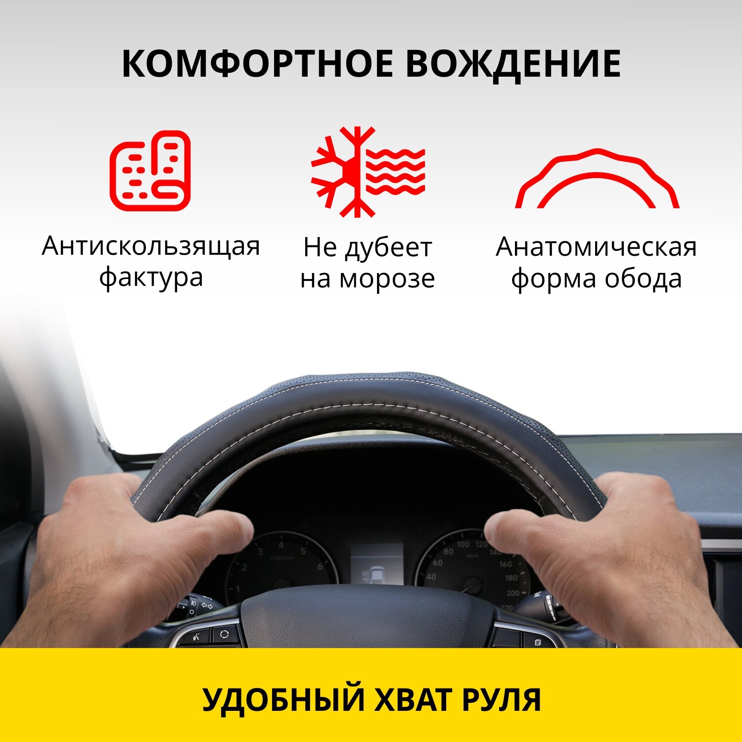 Оплетка на руль Top-12 SKYWAY M (37-39) серый экокожа, S01102501