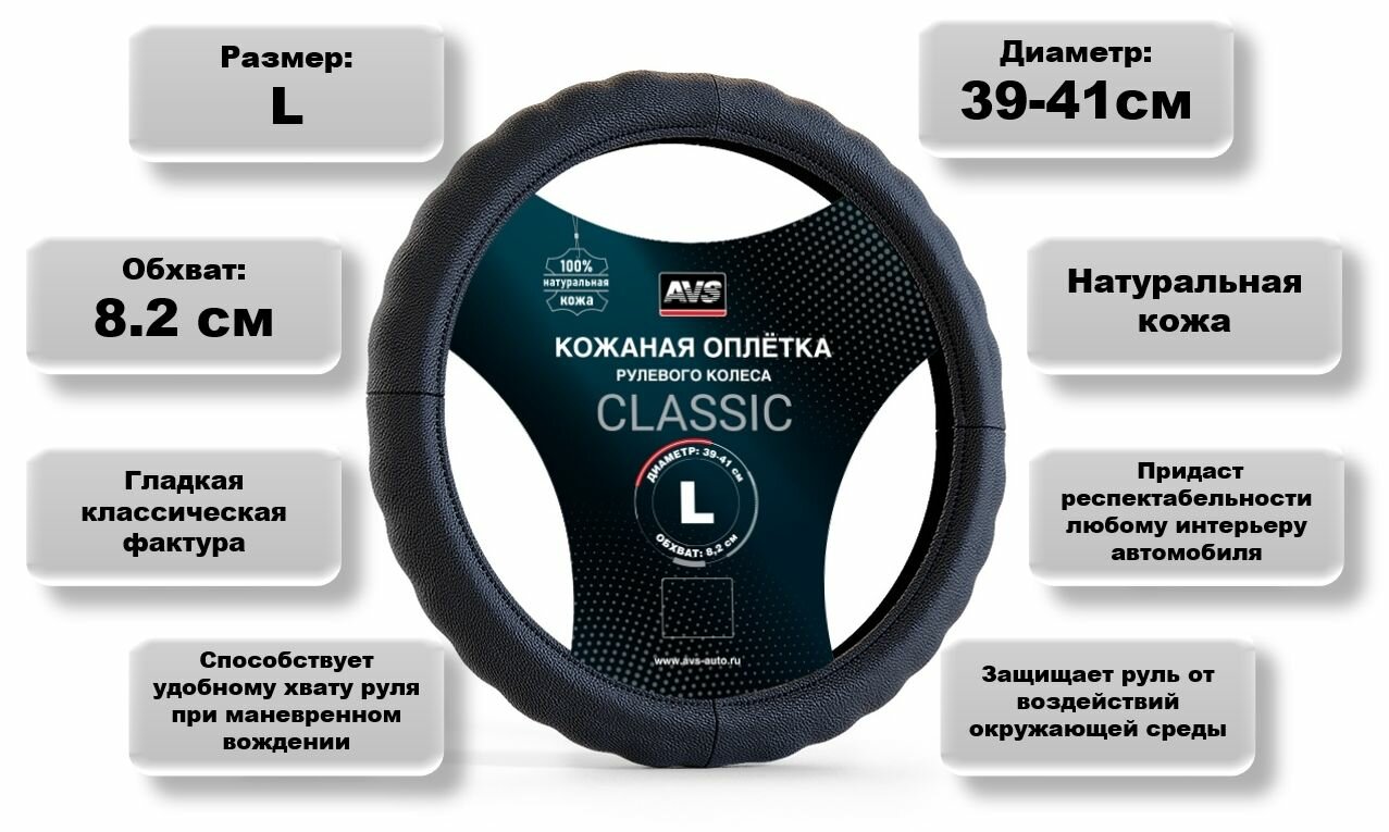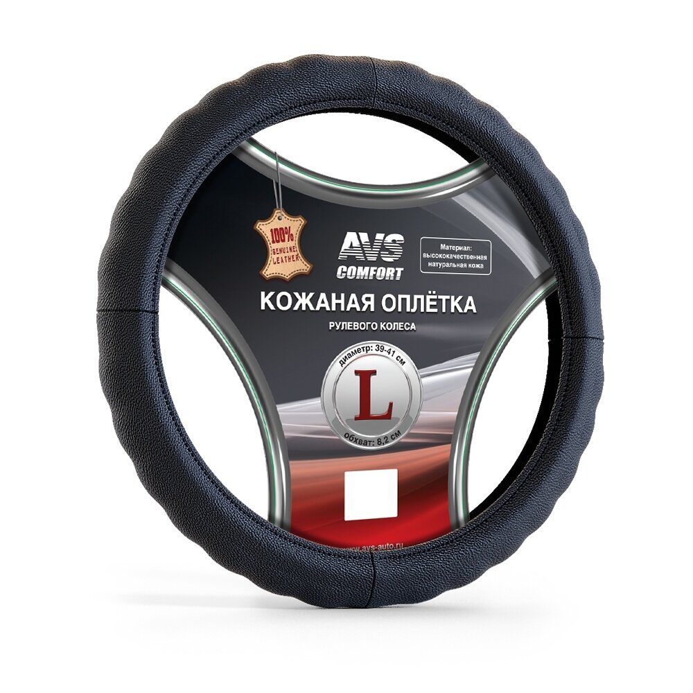 Оплетка на руль (размер L, черный) (натуральная кожа) AVS GL-165L-B