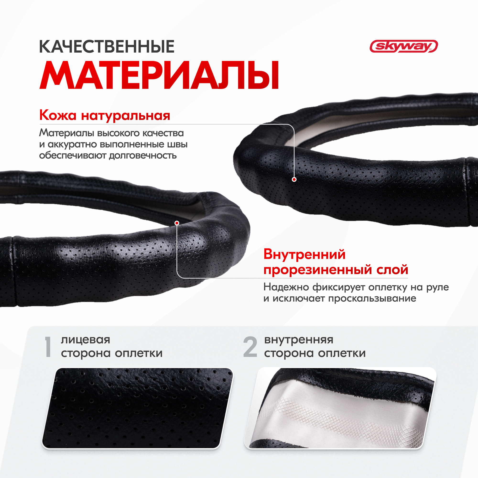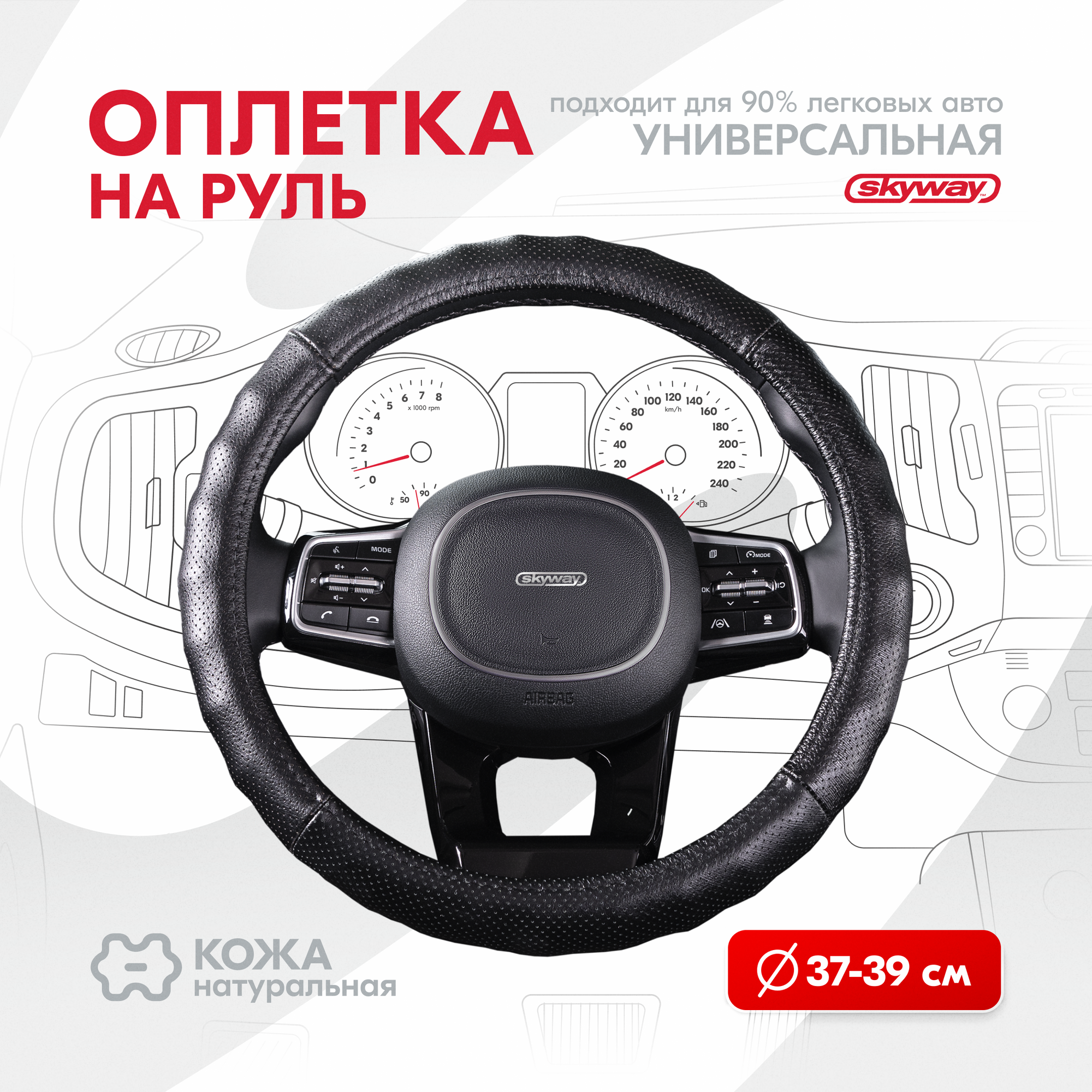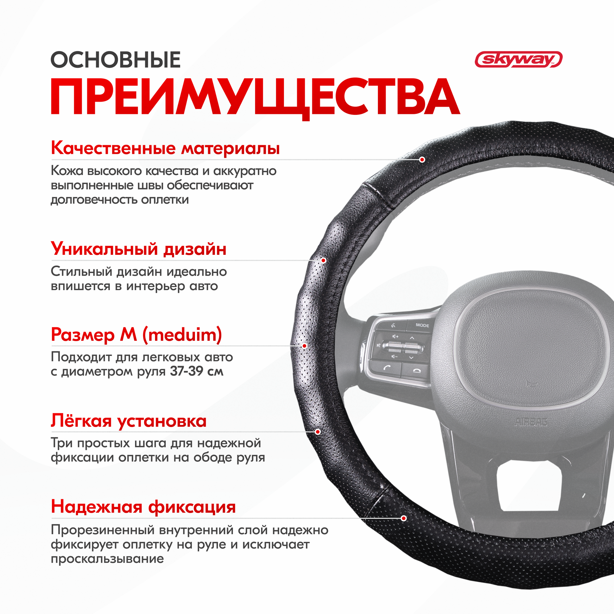 Оплетка на руль Real-4 SKYWAY M (37/38/39 см) черный кожа, S01108007 информация: