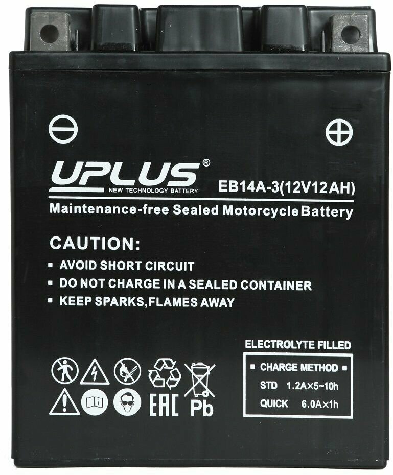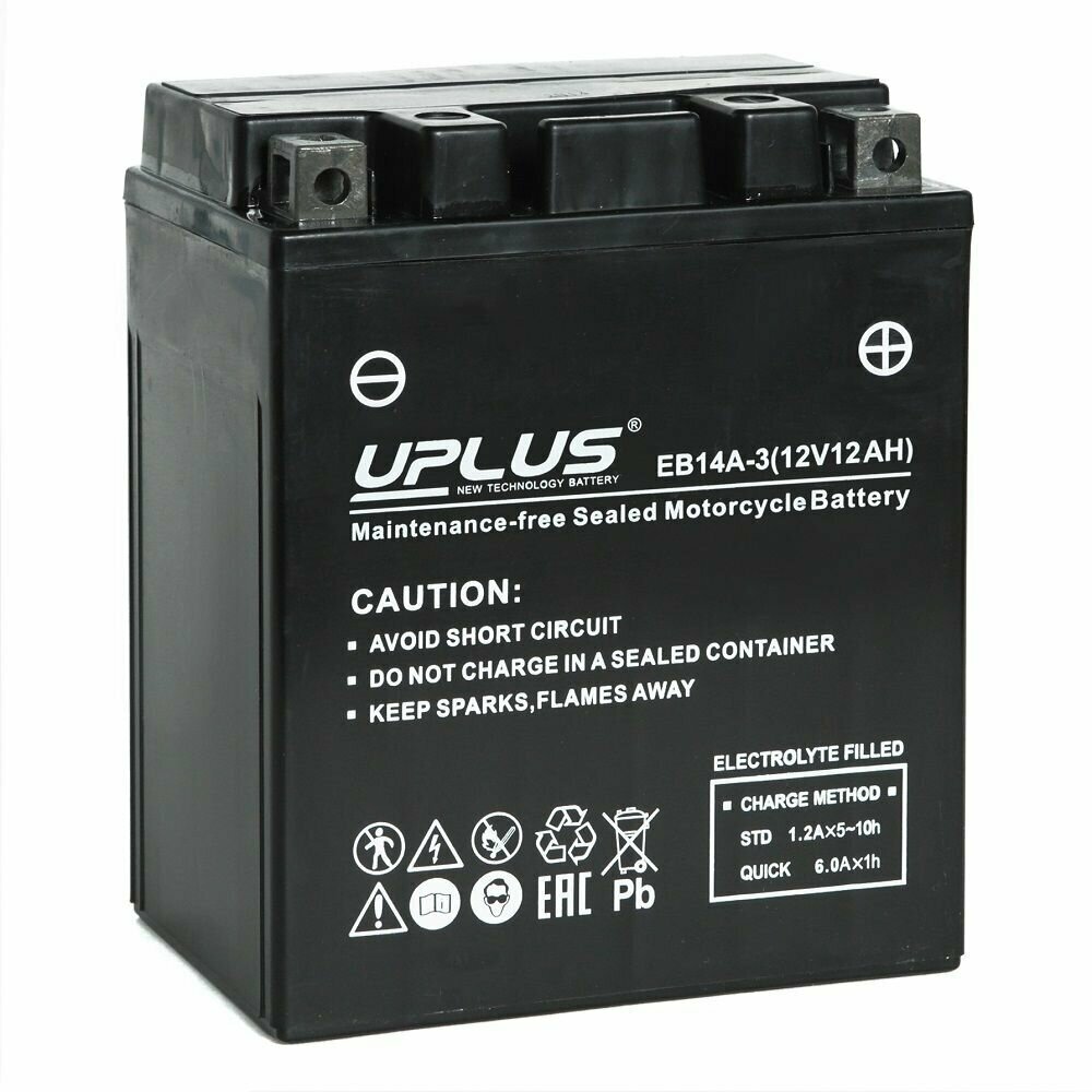 Аккумулятор для мото и гидро техники UPLUS High Perfomance AGM 12 А/ч 210 А обр. пол. залит/заряжен EB14A-3 (133х90х164) YTX14AHL-BS информация:
