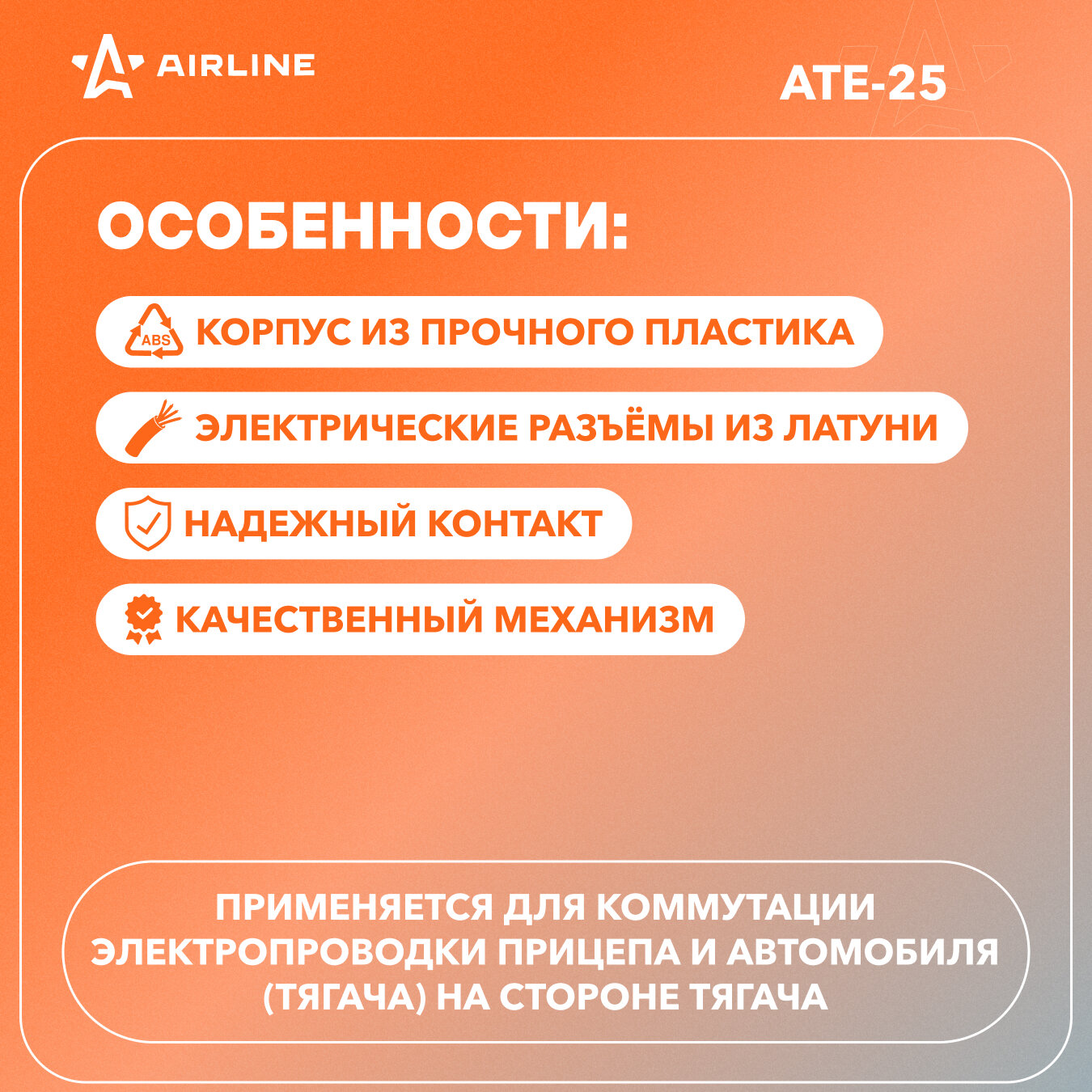 Отзывы на Розетка фаркопа 12В 7 контактов пластик (на кабель) ATE-25 AIRLINE