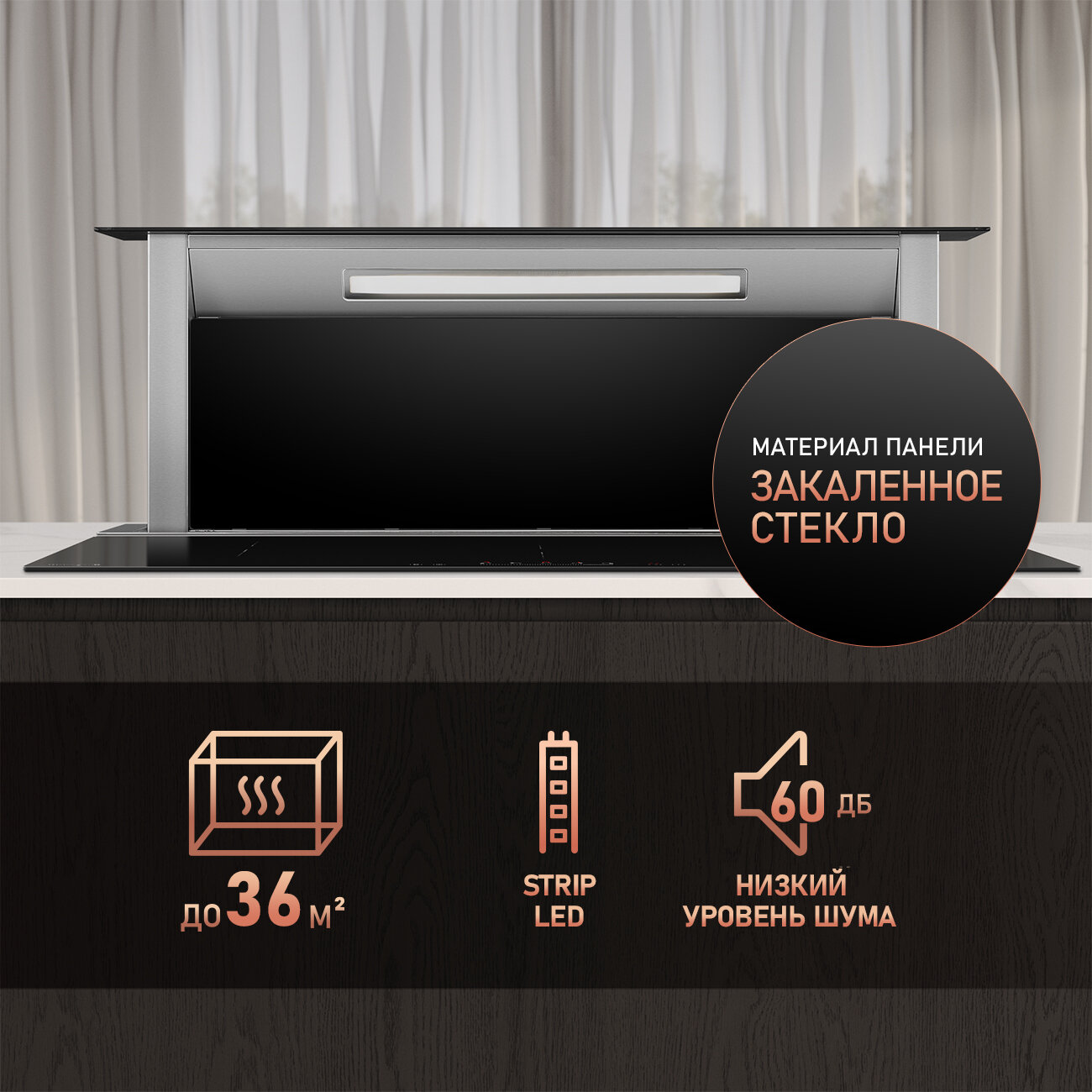 Кухонная встраиваемая в столешницу вытяжка Weissgauff Down Draft 900 Touch Premium Black 3 года гарантии, Алюминиевый жировой фильтр, Низкий уровень шума 57 740 ₽