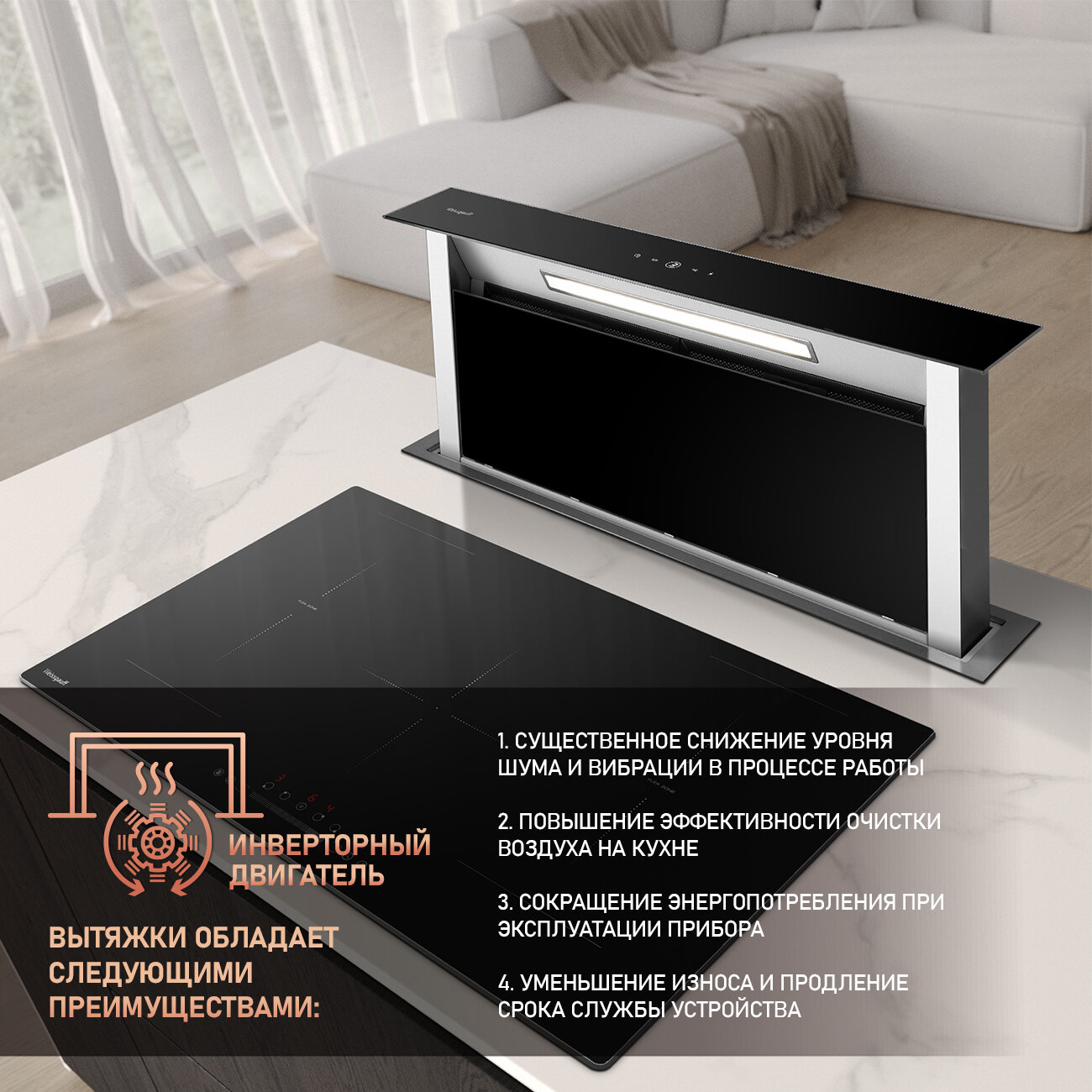 Кухонная встраиваемая в столешницу вытяжка с инвертором Weissgauff Down Draft 900 Touch Inverter Black 3 года гарантии, Алюминиевый жировой фильтр, Низкий уровень шума информация: