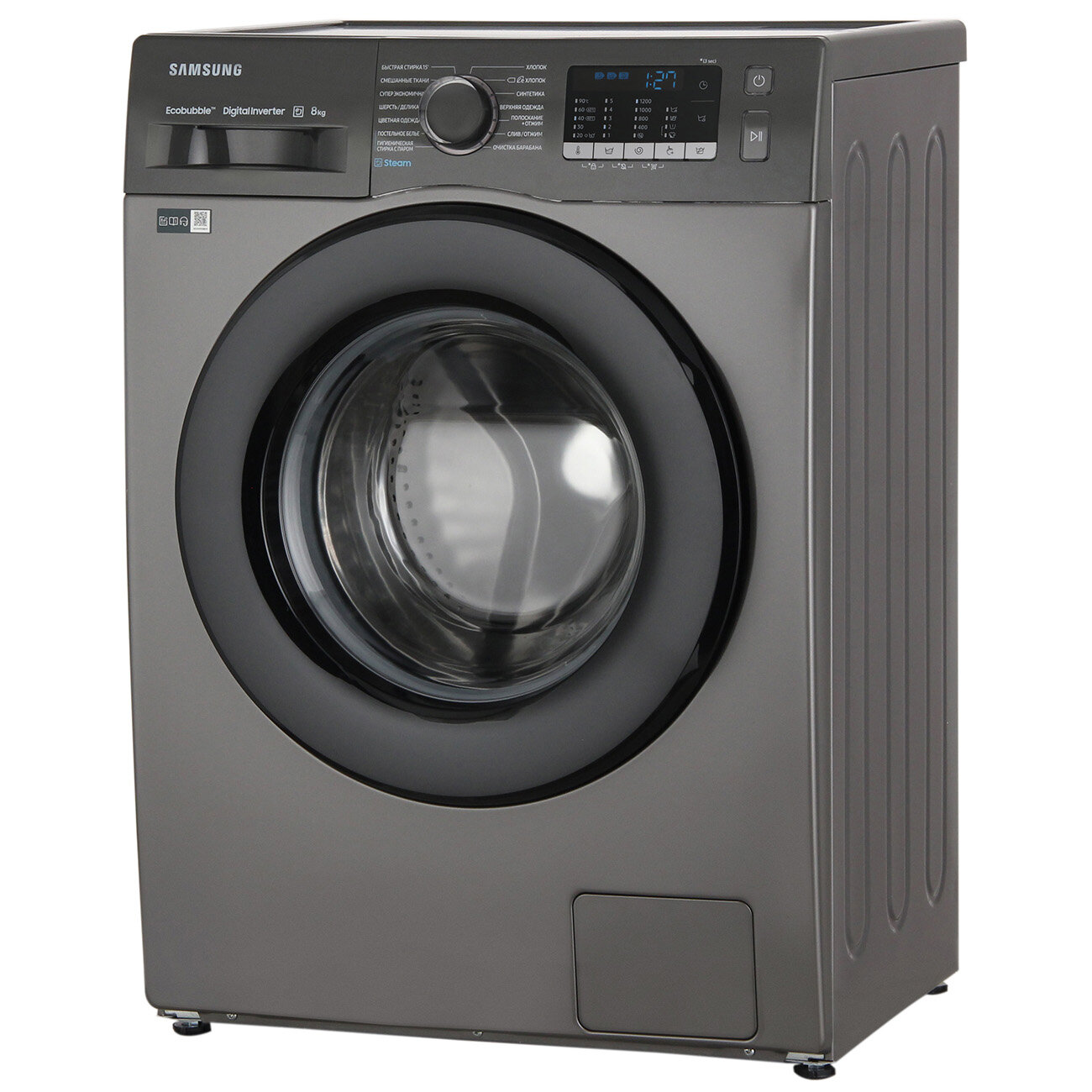 Узкая стиральная машина Samsung WW80AGAS21AXLP, 8 кг, с электронным управлением, инверторным мотором, технологией Eco Bubble, графит / черный 53 090 ₽