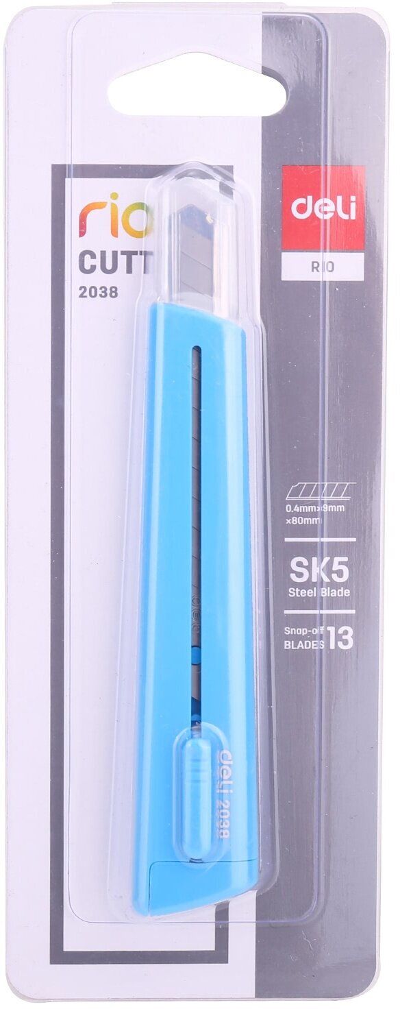 Нож канцелярский Deli E2038BLUE 80мм шир. лез.9мм синий блистер