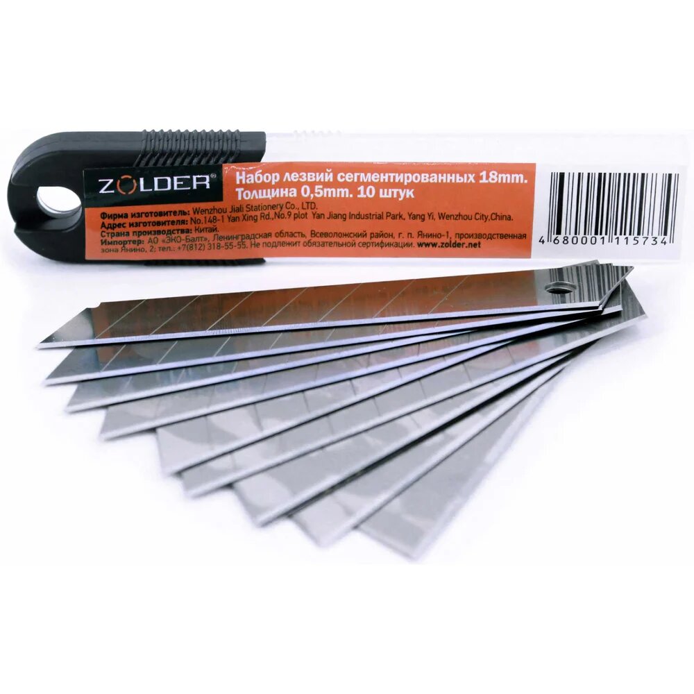 Набор сегментированных лезвий ZOLDER 18 мм, толщина 0,5 мм, 10 шт 4680001115734 информация: