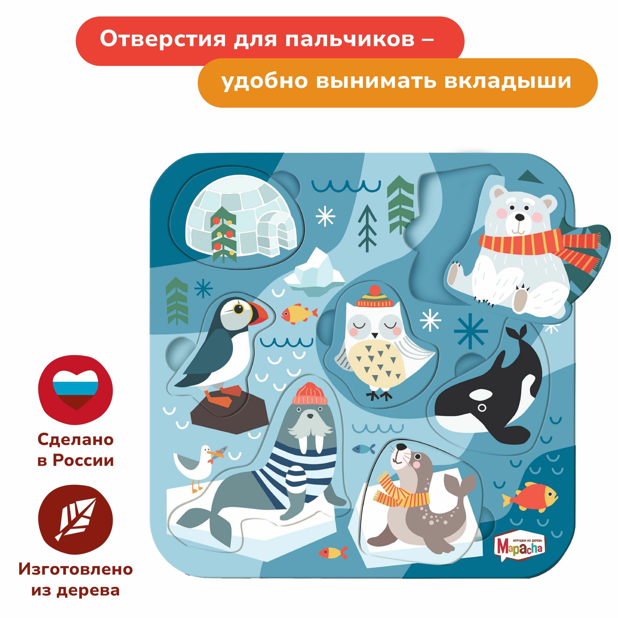 Вкладыши Mapacha "Животные леса", дерево, развивающие, 7 элементов 389 ₽