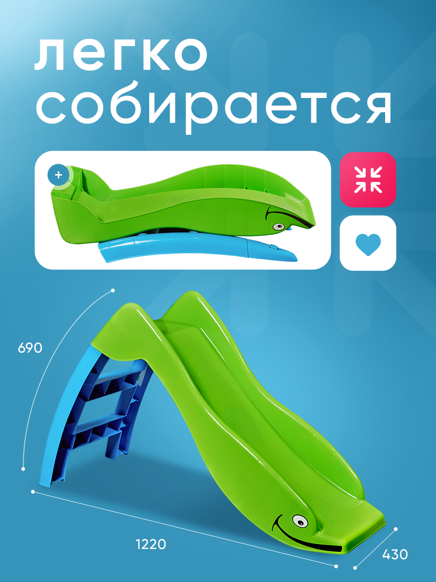Игровая горка Sheffilton KIDS Дельфин 307 зеленый/голубой информация: