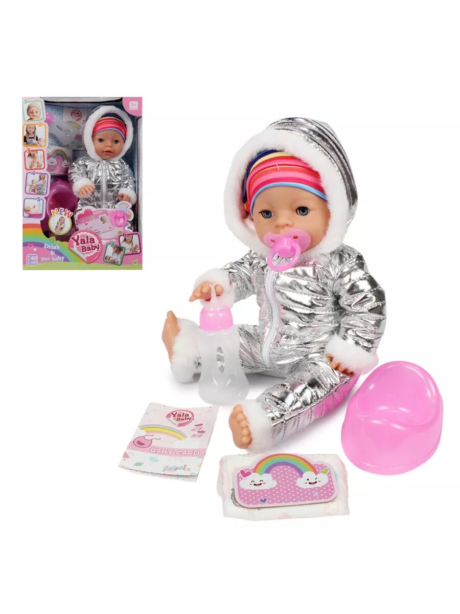 Пупс кукла 40 см с бутылочкой пустышкой, глаза закрываются, одежда снимается, 6 предметов / 1 шт информация: