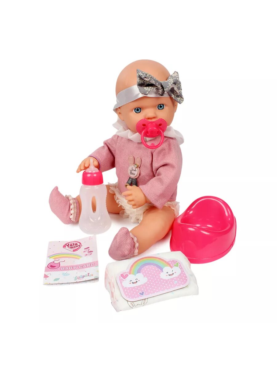 Пупс кукла девочка 35 см с бутылочкой и аксессуаром, 3 предмета, розовый костюм /1 шт 1 099 ₽