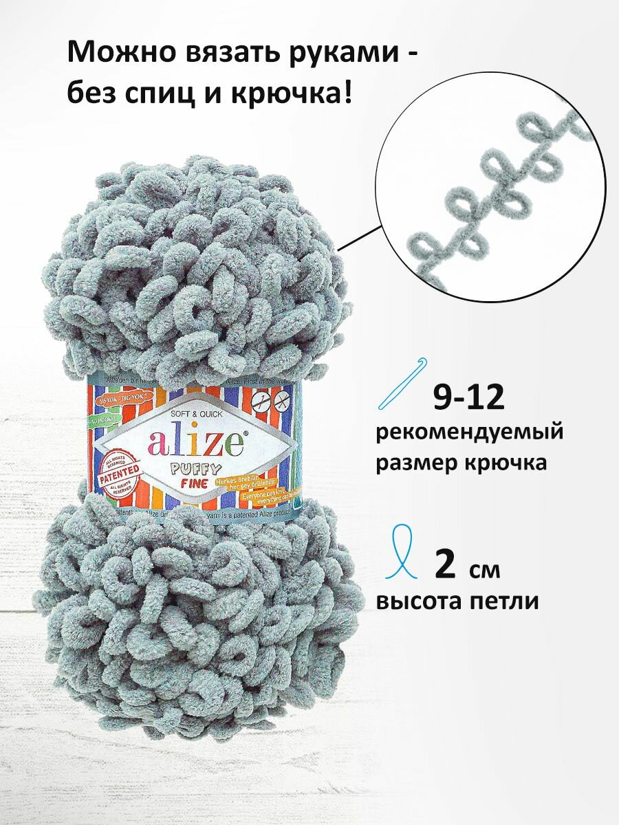 10 цен на Пряжа для вязания руками с готовыми петлями ALIZE 'Puffy Fine' 100г, 14,5м (343 угольно-серый), 5 мотков