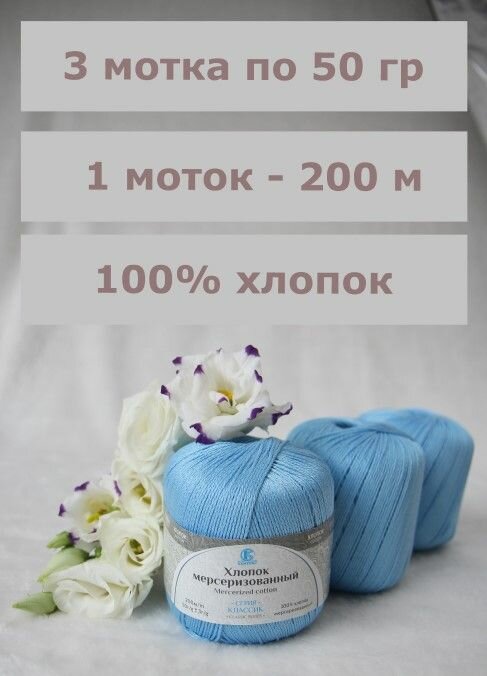 10 цен на Пряжа Хлопок мерсеризованный от Камтекс, цвет Голубой 015, 3 шт*50 г/200 м