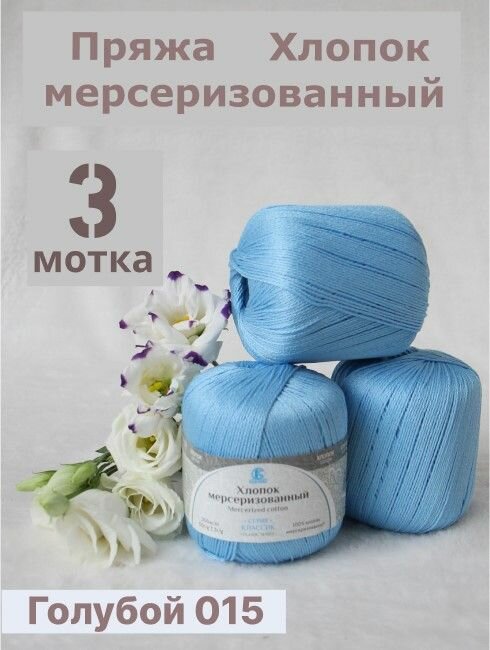 Пряжа Хлопок мерсеризованный от Камтекс, цвет Голубой 015, 3 шт*50 г/200 м информация:
