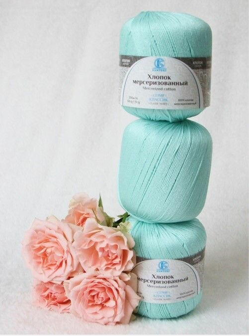 Пряжа Камтекс Хлопок мерсеризованный ментол (107), 100%мерсеризованный хлопок, 200м, 50г, 1шт