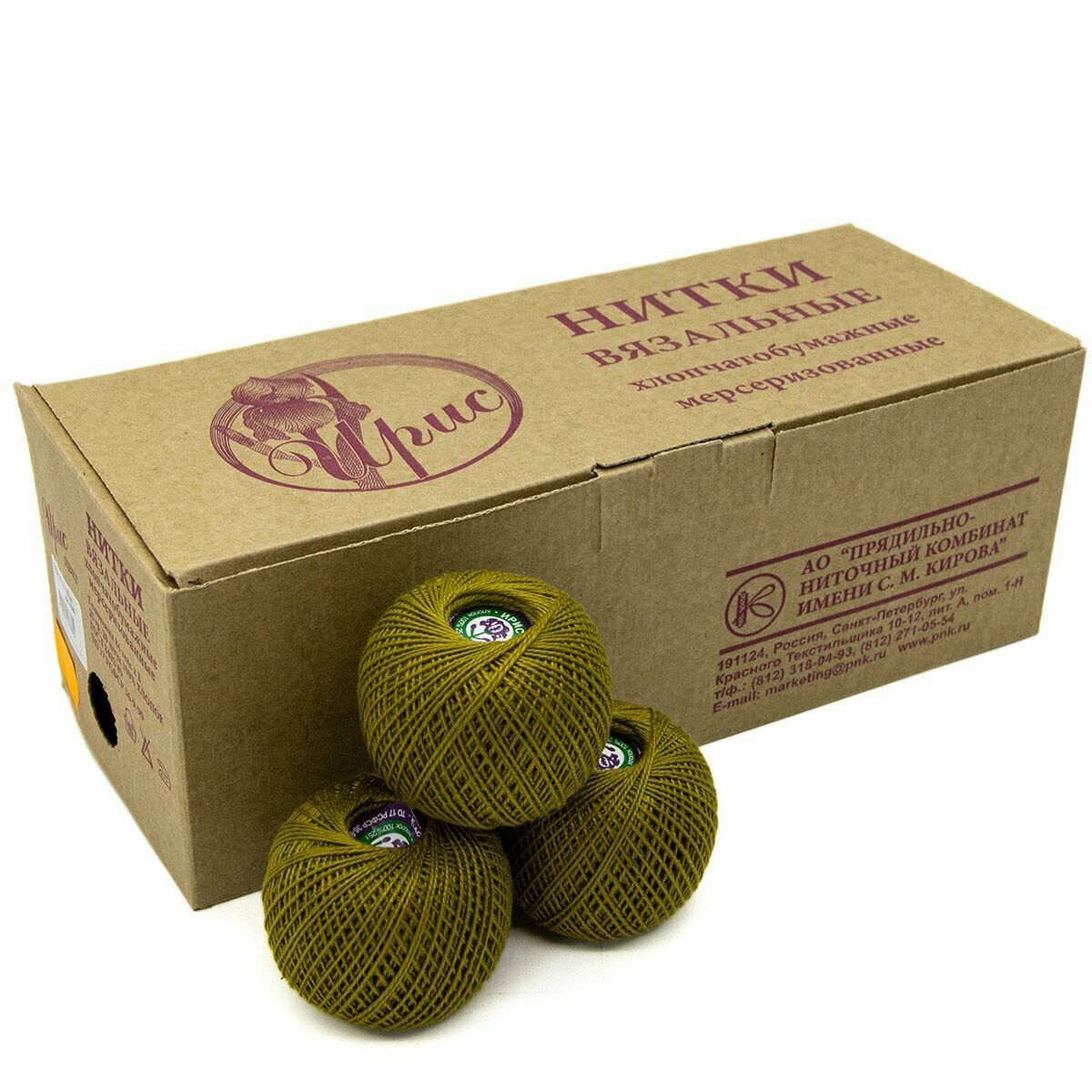 Нитки вязальные ПНК им. Кирова "Ирис", 100% хлопок, 20 шт по 25 г, 150 м, цвет оливковый (ирис.4006)