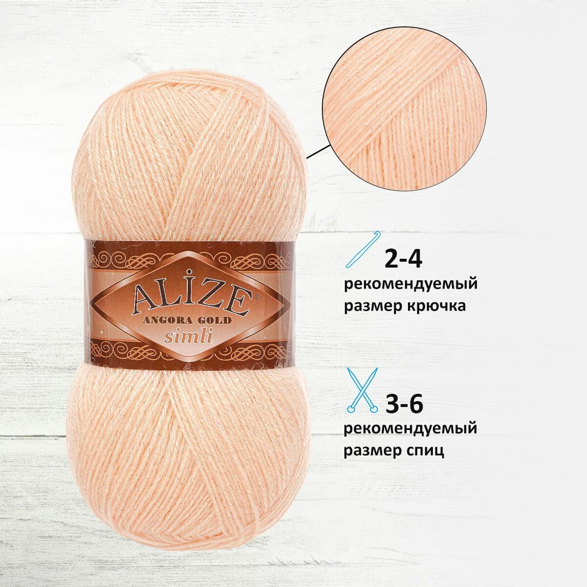 Пряжа для вязания Alize Angora Gold Simli, цвет 95 светло-бежевый, моток 100г, 500м, 5шт/упак 1 440 ₽