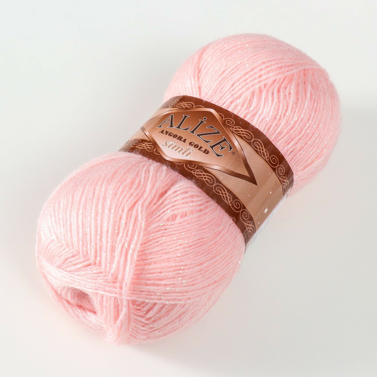 Пряжа Alize Angora Gold Simli, 20 % шерсть, 75 % акрил, 5 % люрекс, 100 г, 500 м, 271 жемчужно-розовый - 3 мотка 1 245 ₽