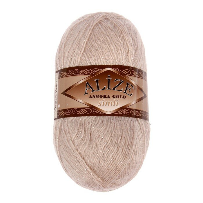 Пряжа для вязания Alize Angora Gold Simli, цвет 95 светло-бежевый, моток 100г, 500м, 5шт/упак 1 440 ₽