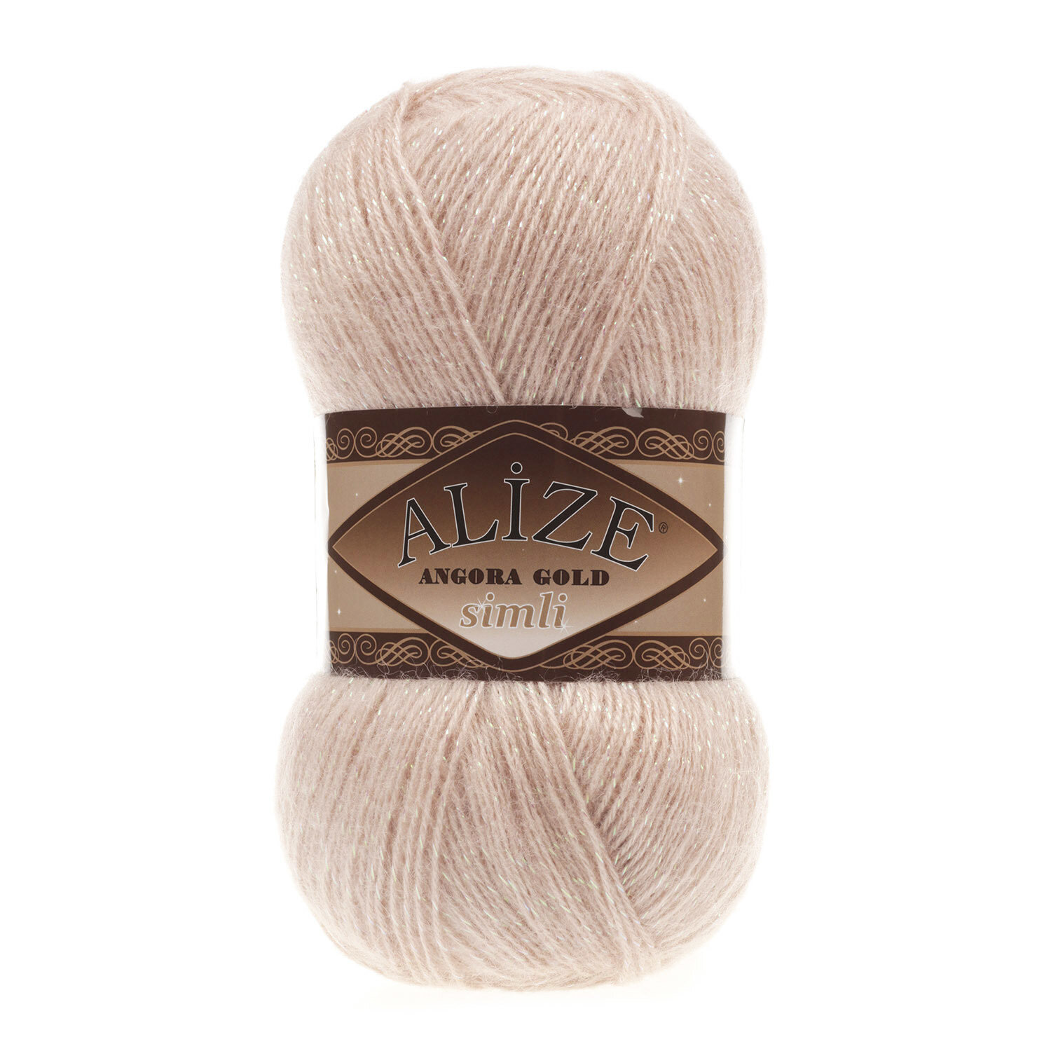 Пряжа для вязания ALIZE 'Angora Gold Simli', 100г, 500м (20% шерсть, 5% металлик, 75% акрил) (95 светло-бежевый), 5 мотков