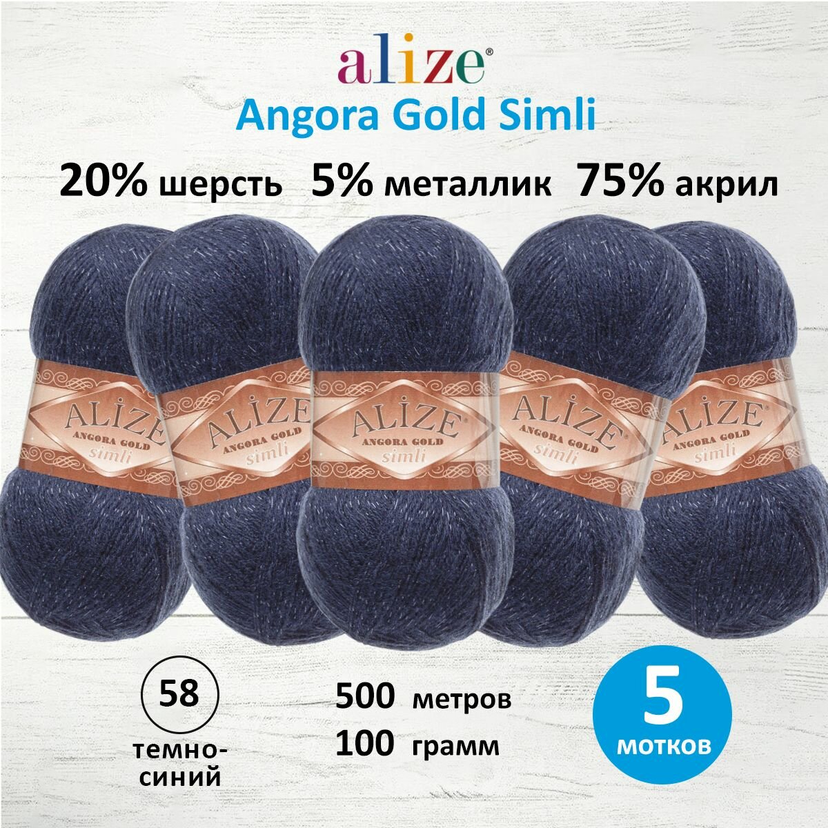 Пряжа ALIZE ANGORA GOLD SIMLI, темно-синий - 58, 5% металлик, 20% шерсть, 75% акрил, 5 мотков, 100 г., 500 м. информация: