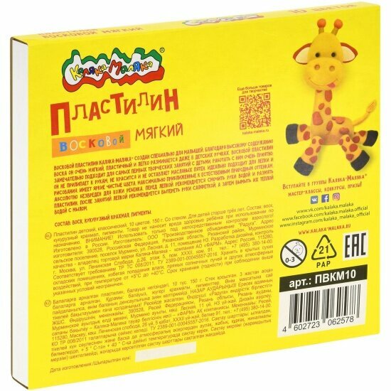 Отзывы на Пластилин Каляка-маляка восковой 10 цв. 150 г ассорти со стеком