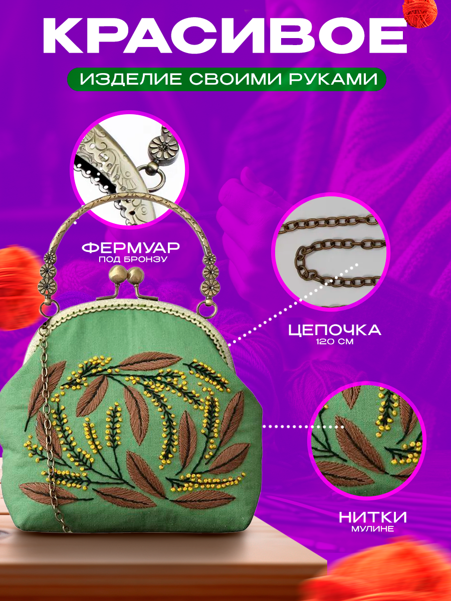 Набор для шитья и вышивки "Сумочка своими руками" зеленый информация: