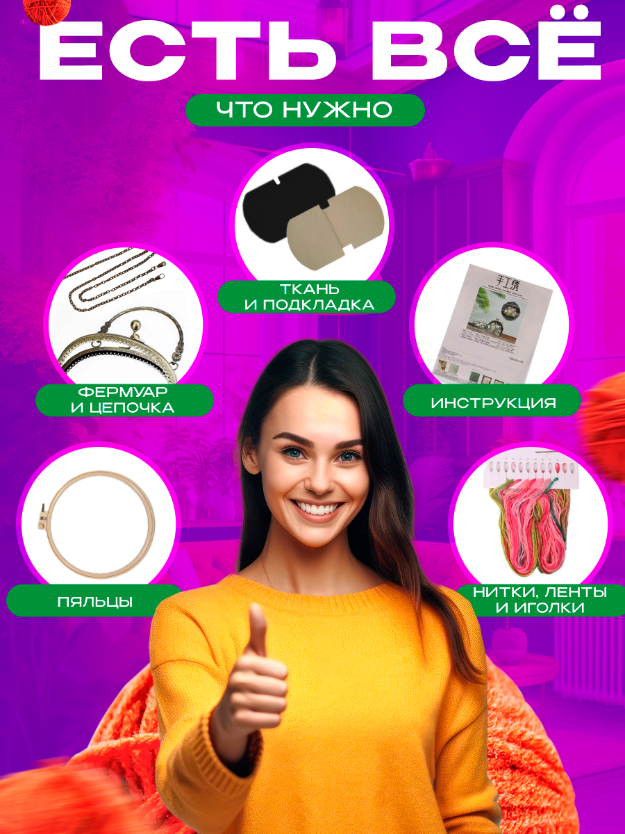 10 цен на Набор для шитья и вышивки "Сумочка своими руками" зеленый