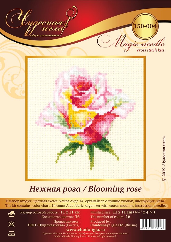 150-004 "Нежная роза". Набор для вышивания крестом Чудесная игла 11 х 11 см. информация: