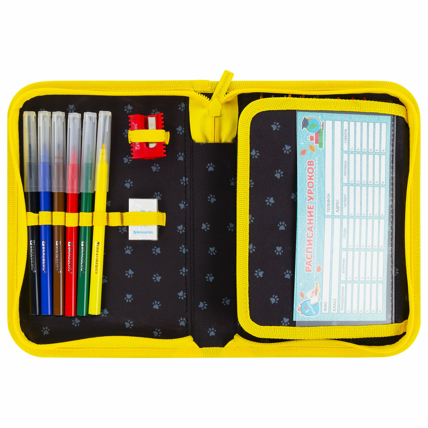 Пенал BRAUBERG с наполнением, 1 отделение, 1 откидная планка, 24 предмета, 21х14 см, "Dark cat", 272351 информация: