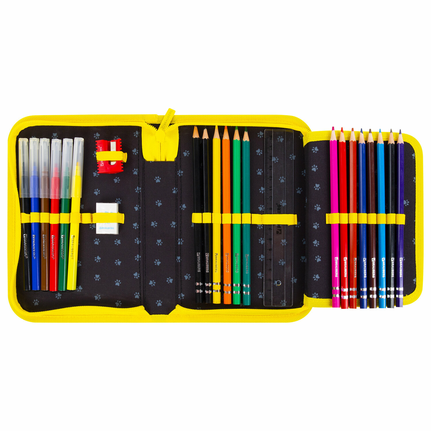 Пенал Brauberg с наполнением, 1 отделение, 1 откидная планка, 24 предмета, 21х14 см, Dark cat, 272351 648 ₽